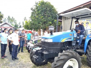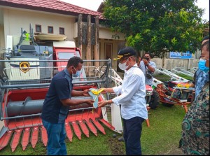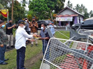 Kominfosandi - Bupati Halmahera Utara, Ir Frans Manery menyerahkan bantuan Alat dan Mesin Pertanian (Alsintan) kepada 3 Kelompok Tani, Kamis (21/10/2021).
