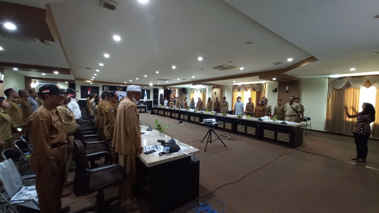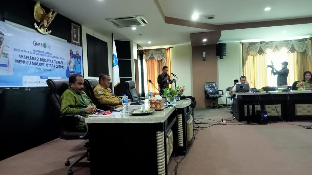 Asisten Bidang Ekonomi dan Pembangunan Yudhiahart Noija,S.Si.,MH membuka workshop Literasi yang di Ikuti Seluruh Kepala Desa (Kades) Se- Kabupaten Halmahera Utara.