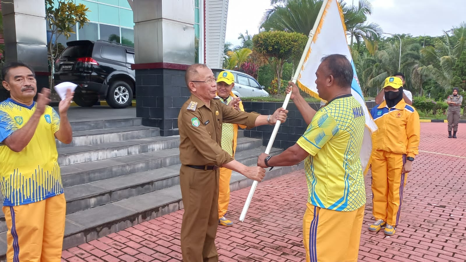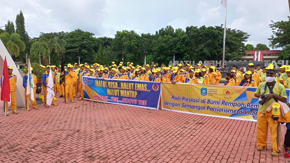 Bupati Halmahera Utara , Ir.Frans Manery melepas secara resmi 221 Atlit Kabupaten Halmahera Utara yang akan berlaga pada Pekan Olahraga Provinsi Maluku Utara (Porprov Malut ) Ke-IV Tahun 2022 di Kota Ternate