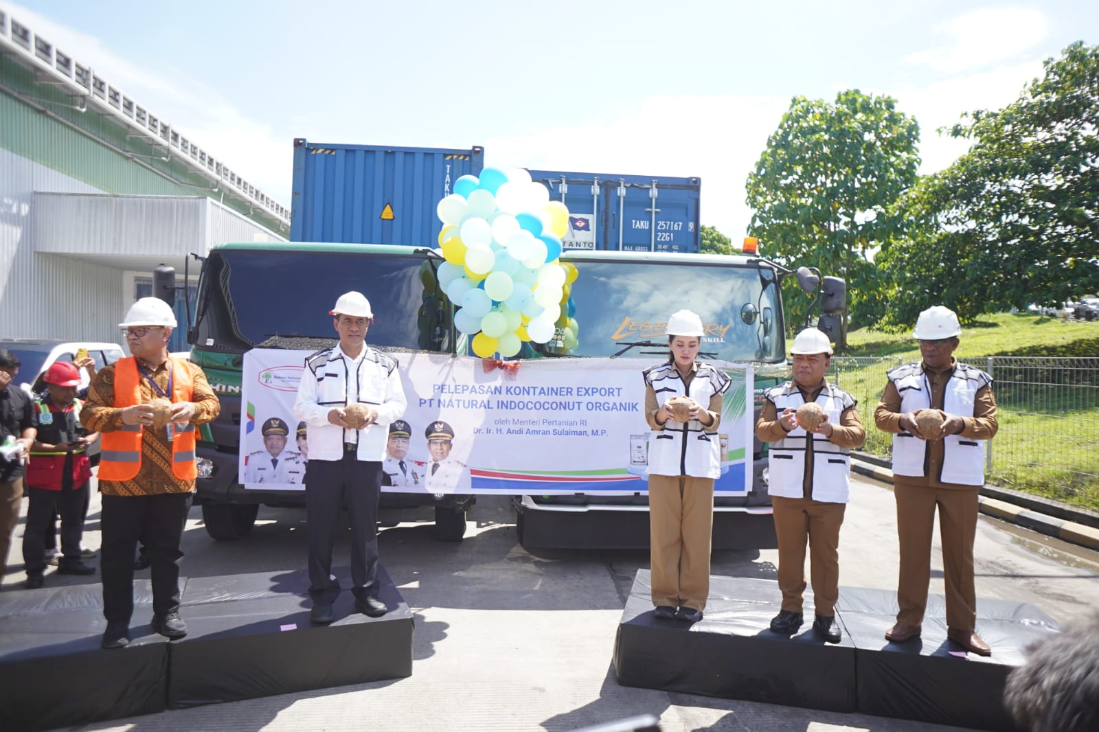 DISKOMINFOSAN. “Terima kasih Maluku Utara, terima kasih Halmahera Utara, terima kasih PT NICO. Hari ini kita bisa melepas secara simbolis 2 konteiner produk hilirisasi kelapa yaitu coconut milk, minyak kelapa murni (VCO), dan berbagai turunan lainnya senilai 1,6 Miliar ke Cina,” kata Menteri Pertanian (Mentan) Andi Dr. Ir Andi Amran Sulaiman, M.P, saat agenda kerja Tinjauan Pabrik Hilirisasi dan berkesempatan melepas produk yang akan diekspor di PT NICO desa Kupa Kupa, Kecamatan Tobelo Selatan Kabupaten Halmahera Utara, Maluku Utara (27/10).