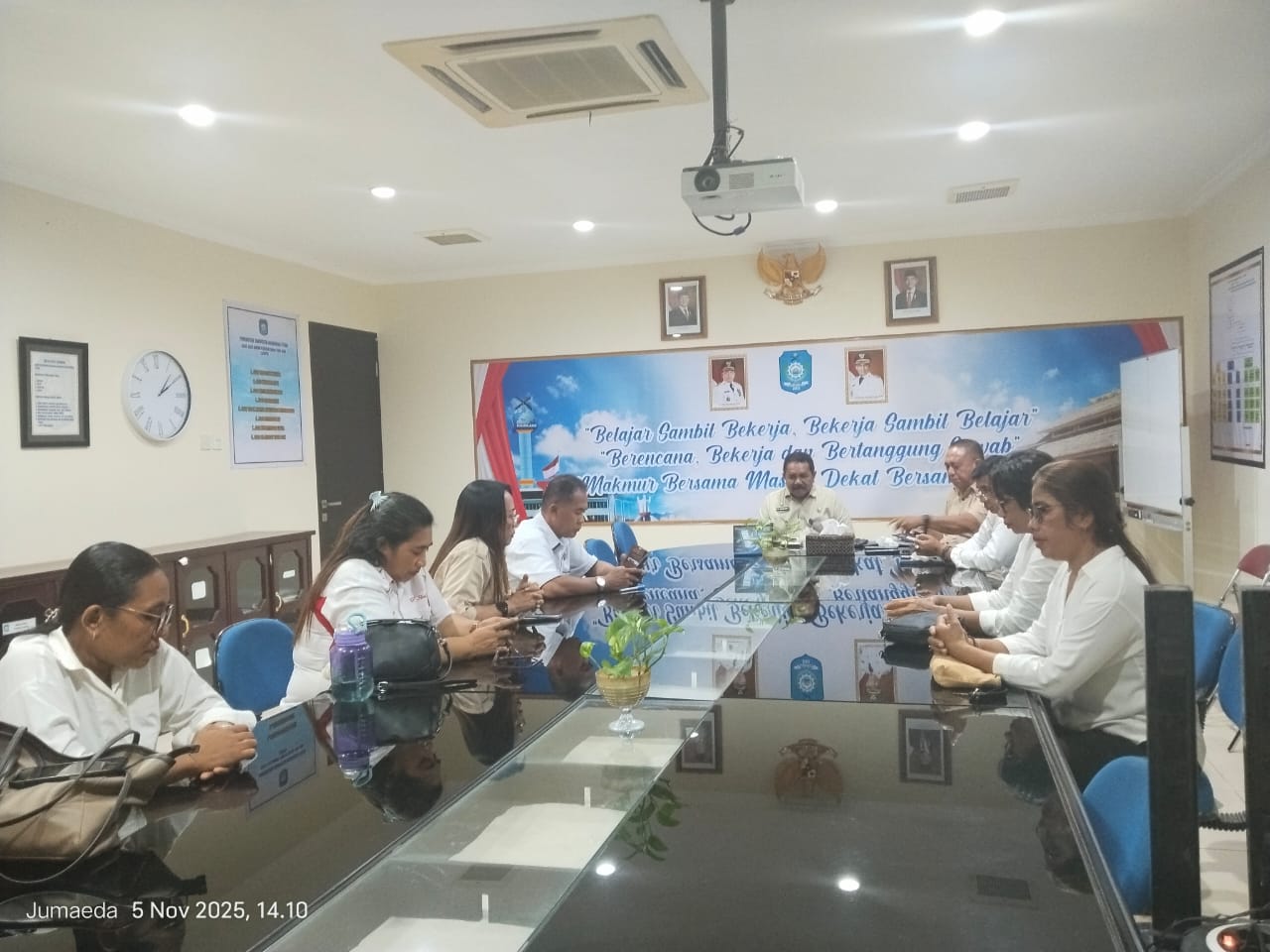 DISKOMINFOSAN. Pemerintah Kabupaten Halmahera Utara menggelar Rapat Persiapan Perayaan Natal Oikumene Pemerintah Daerah Tahun 2025, yang berlangsung di Ruang Meeting Sekretaris Daerah, lantai II Kantor Bupati Kabupaten Halmahera utara, (5/11).