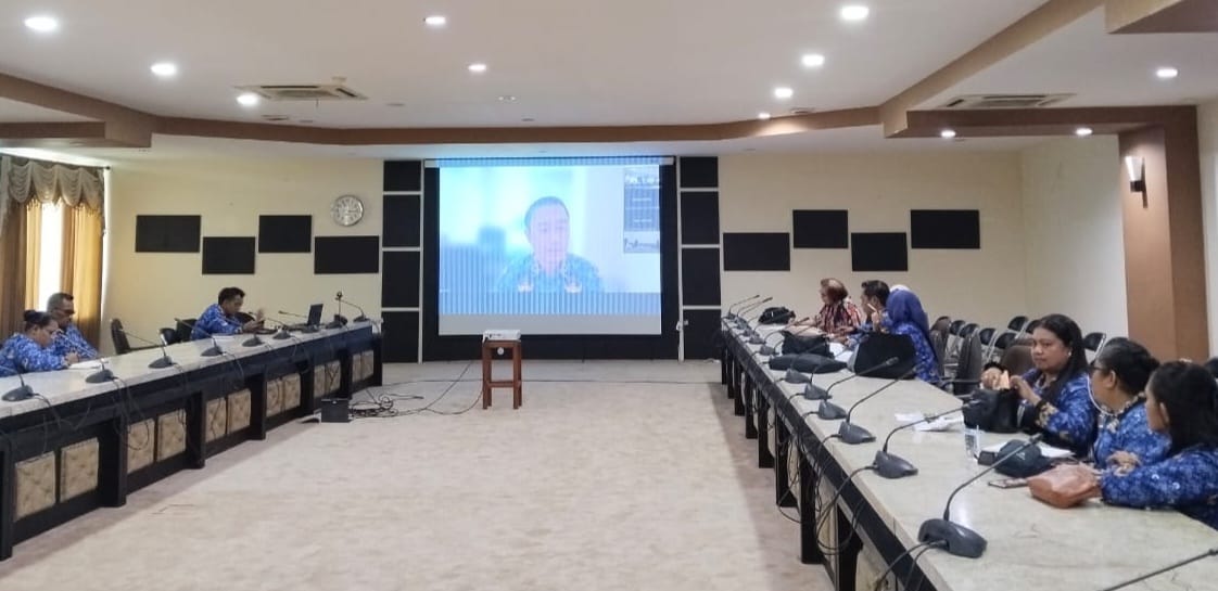 DISKOMINFOSAN. Pemerintah Kabupaten Halmahera Utara melalui Tim Pembina Posyandu mengikuti kegiatan Sosialisasi Penyusunan Rencana Strategis (Renstra) dan Saran Tindak terhadap Isu Strategis Posyandu pada 6 Bidang Standar Pelayanan Minimal (SPM), Kegiatan ini bertempat di Ruang Meeting Fredy Tjandua, Lantai II Kantor Bupati Halmahera Utara, dan diikuti oleh perwakilan dari Dinas Kesehatan, TP-PKK Halut, DPMD, Dinas PUTR, Satpol PP, serta pengurus dan kader Posyandu melalui Zoom Meeting. (10/11).
