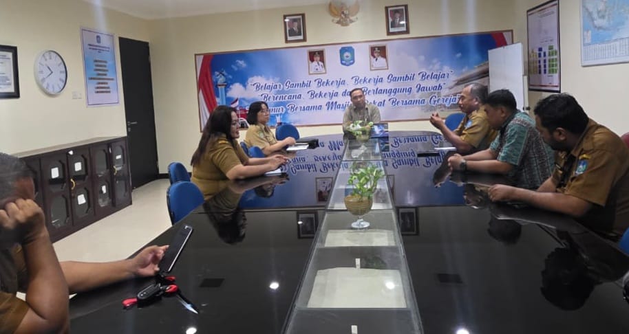 DISKOMINFOSAN. Untuk meningkatkan disiplin ASN lingkup Pemda Kabupaten Halmahera Utara, Sekretaris Daerah Drs E. J Papilaya, MTP, menggelar Rapat Pantau Kendali kehadiran ASN di Kantor terutama saat Apel pagi dan sore di ruang pertemuan Sekda (11/11). Hadir dalam rapat tersebut Asisten II Bidang Administrasi, SAB Bid SDM, Pendidikan dan Kemasyarakatan, Inspektur Daerah, Kaban BKD PSDA, Kadis Kominfosan dan Kabag Korpri Setda.
