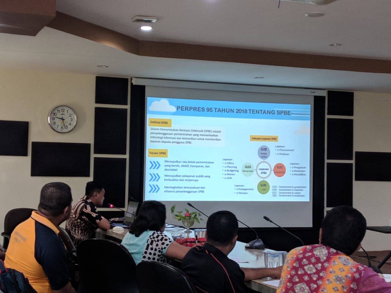 Selanjutnya, Kabid Layanan Infrastruktur Dasar dan Data Center, Yandre A Sumtaki, ST memaparkan tentang SPBE, sebagai penyelenggaraan pemerintah yang memanfaatkan teknologi informasi dan komunikasi untuk memberikan layanan kepada pengguna SPBE.