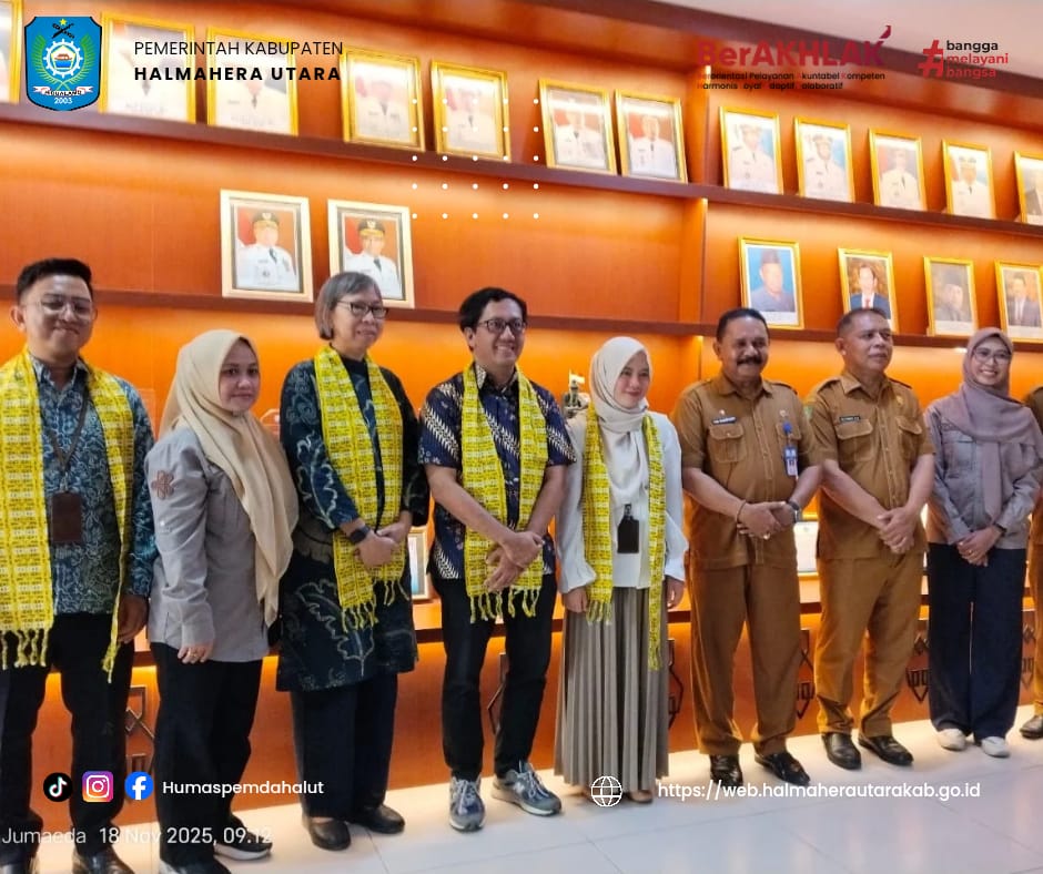 DISKOMINFOSAN. Pemerintah Kabupaten Halmahera Utara menyambut kedatangan Tim Penilai Eliminasi Malaria Kementerian Kesehatan RI dalam rangka pelaksanaan Penilaian Eliminasi Malaria Tahun 2025, yang digelar di Ruang Meeting Sekretaris Daerah, Lantai II Kantor Bupati Halut, pada Selasa (18/11).