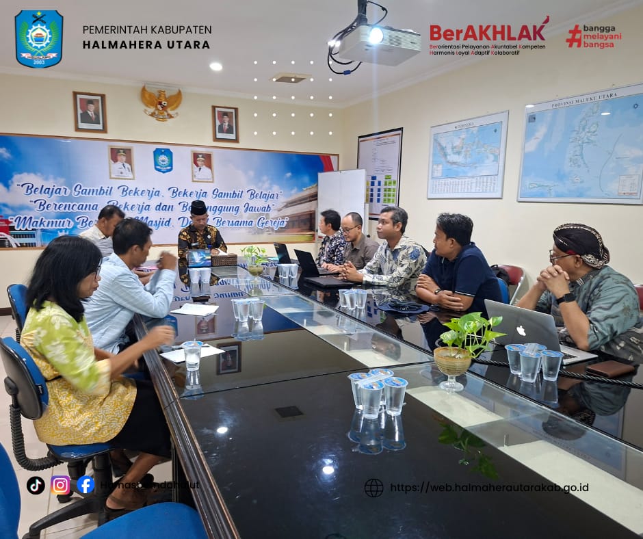 DISKOMINFOSAN. Bertempat di ruang pertemuan Sekretaris Daerah, dilakukan rapat koordinasi terkait survey Lahan Pala. Untuk Penelitian di tahun 2026, oleh Prof Dr. Tri Kuntoro Priyambodo, M.Sc serta Tim dari Universitas Gadja Mada Yogyakarta. Rakor tersebut dipimpin oleh Asisten Bidang Perekonomian dan Pembangunan Samud Taha,SP,M.Si.