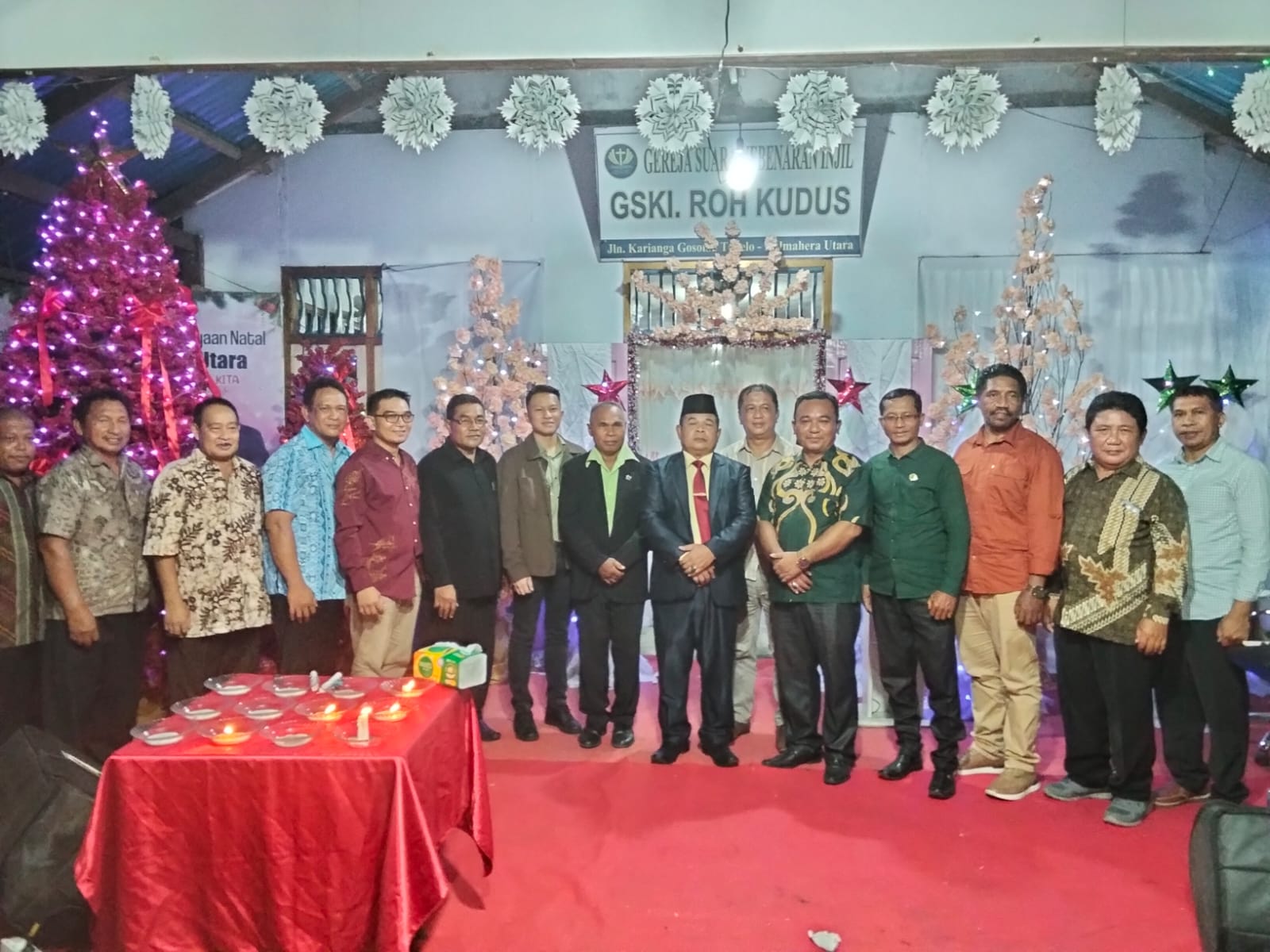 DISKOMINFOSAN - Mewakili Bupati Halmahera Utara, Staf Ahli Bupati Bidang Sumber Daya Manusia,Pendidikan dan Kemasyarakatan Setda Halmahera Utara,Drs.Wenas Rompis hadiri perayaan Natal Yesus Kristus Gereja Suara Kebenaran Injil ( GSKI) Tobelo. Selasa 2 Desember 2025 Bertempat di gedung GSKI Tobelo, desa Gosoma kecamatan Tobelo Halmahera Utara. Ibadah Perayaan Natal Yesus Kristus dengan Tema " Allah Hadir Menyelamatkan Keluarga"