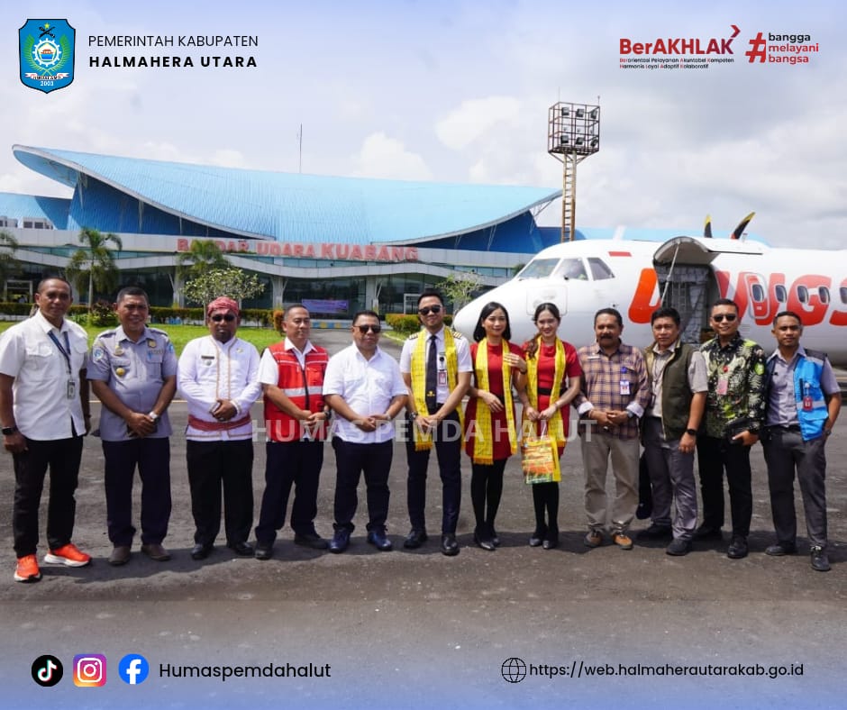 DISKOMINFO. Jumat 12 Desember 2025, menandai beroperasinya kembali Bandara Kuabang Kao setelah sekian lama vakum. Pesawat Maskapai Wings Air dari Manado, yang dipiloti oleh Capt Ganda Baarokta, Fo Lingga Kusuma serta kru pesawat Aprilia Hariyanti dan Fiorencia Vandeuw, mendarat sempurna di bandara kebanggaan masyarakat Halmahera Utara ini.