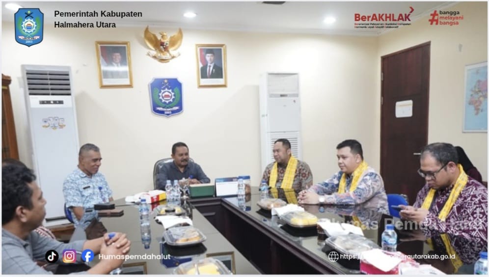DISKOMINFO. Tim dari Ditfas Ekspor Impor Kementerian Perdagangan Republik Indonesia (Kemendag RI) berkunjung ke Halmahera utara. Untuk Validasi Kesiapan Pemda Halmahera Utara dalam penerbitan Surat Keterangan Asal (SKA) atau Certificate of Origin (CoO) bagi barang ekspor Indonesia. Diterima secara resmi oleh Asisten I bidang Pemerintahan F.N Sahetapy, mewakili Bupati, di ruang Meeting VIP Wakil Bupati, Lantai II Kantor Bupati Halmahera Utara (30/1).