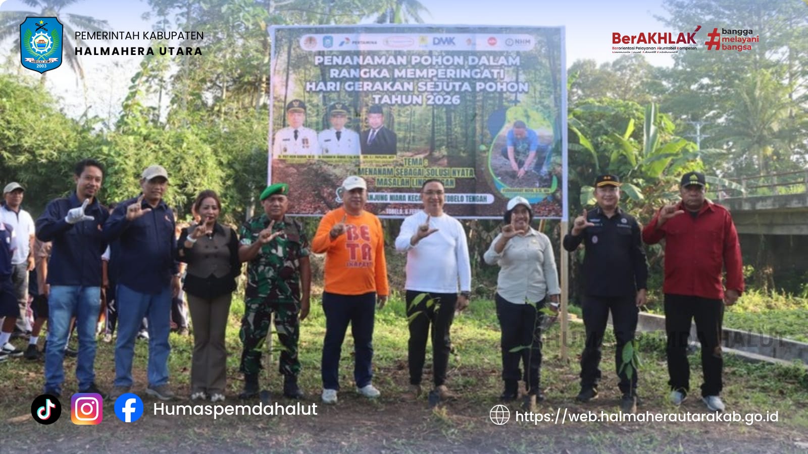 DISKOMINFO — Menindaklanjuti Instruksi Presiden Republik Indonesia, Pemerintah Kabupaten Halmahera Utara (Halut) menggelar aksi penanaman pohon dalam rangka memperingati Hari Gerakan Sejuta Pohon 2026, Jumat 6 Februari 2026.Kegiatan berlangsung di kawasan Ake WKO II, Desa Tanjung Niara, Kecamatan Tobelo Tengah.