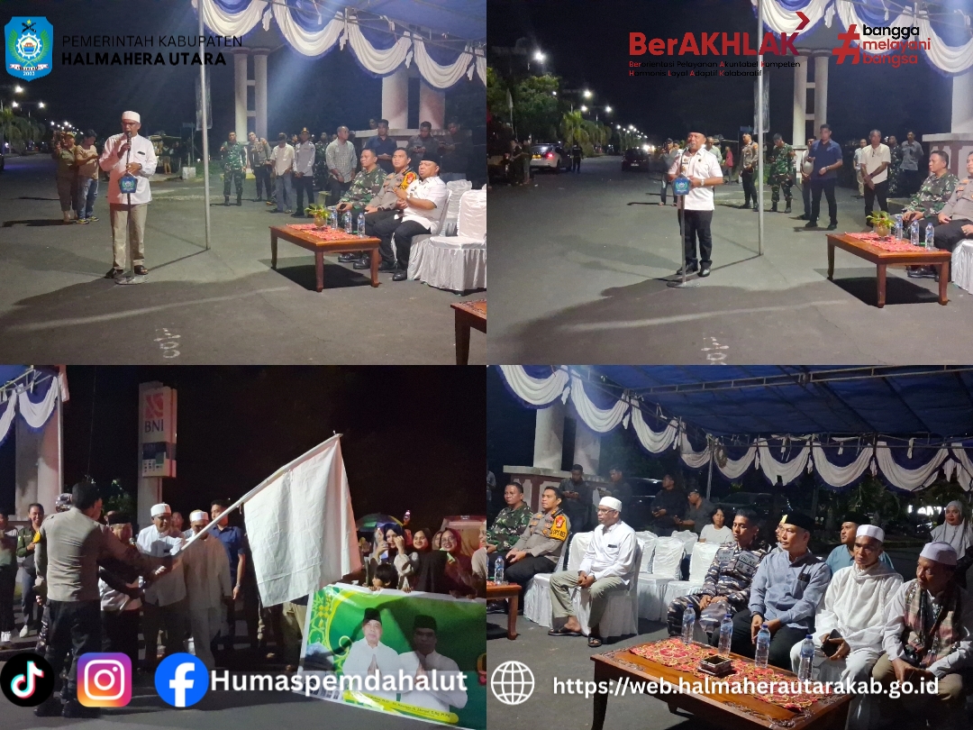DISKOMINFO - Pemerintah Daerah kabupaten Halmahera Utara bersama Panitia Hari Besar Islam (PHBI)menggelar Gema Takbir Keliling untuk menyambut hari kemenangan 1 Syawal 1447 H. Kegiatan dipusatkan di depan kantor Bupati jalan Ir. Hein Namotemo desa Gamsungi Tobelo. Jumat 20 Maret 2026.