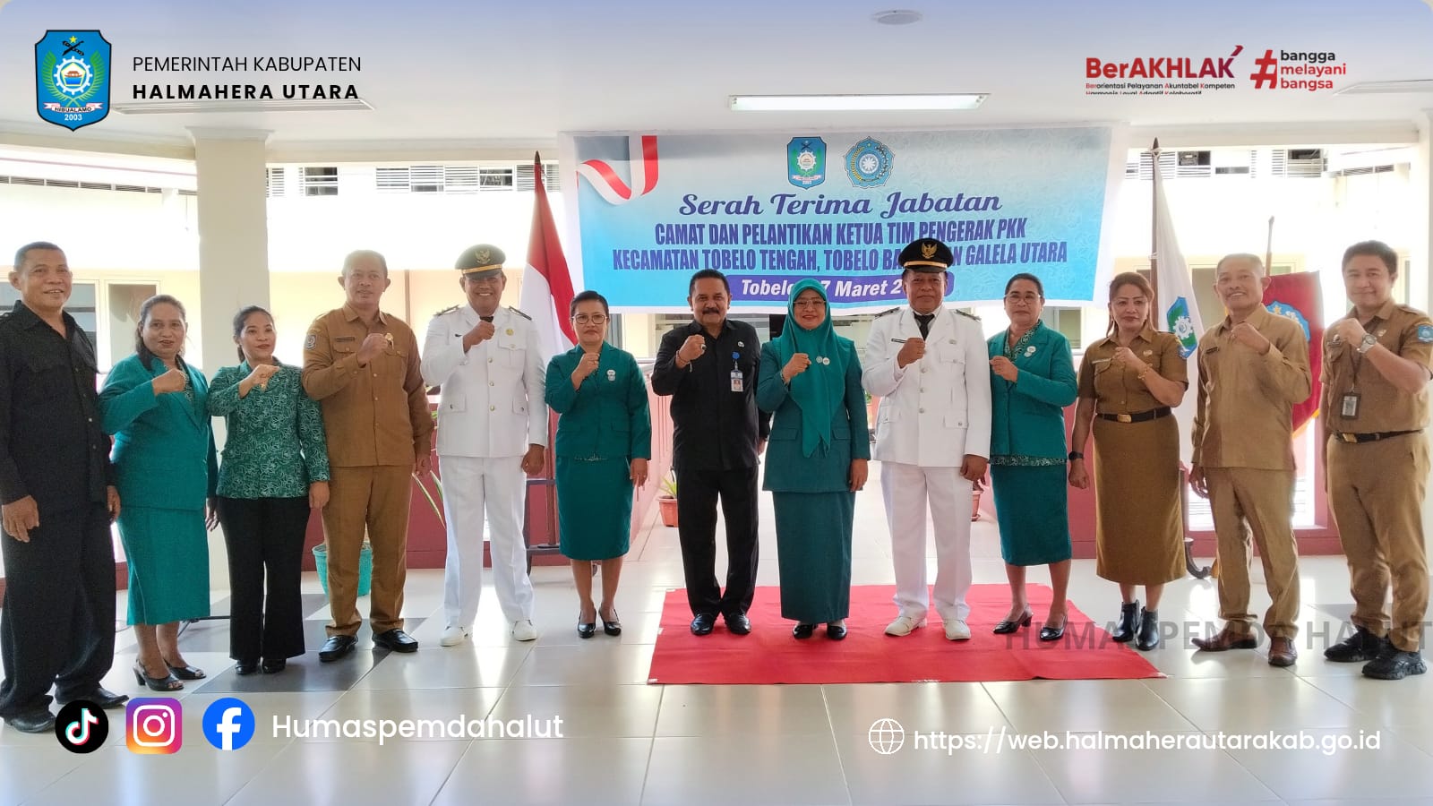DISKOMINFOSAN. Pemerintah Kabupaten Halmahera Utara menggelar acara Serah Terima Jabatan (Sertijab) Camat Tobelo Tengah, Tobelo Barat, serta pengangkatan Pelaksana Tugas (Plt) Camat Galela Utara, yang dirangkaikan dengan pelantikan Ketua Tim Penggerak PKK di tiga kecamatan tersebut.