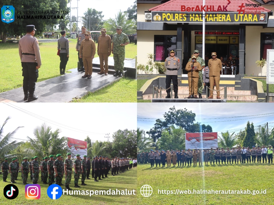 DISKOMINFO - Bupati Halmahera Utara Dr. Piet Hein Babua, M.Si,bertindak sebagai Inspektur Upacara di Apel Gelar Pasukan Operasi AMAN NUSA 2026.Bertempat di Polres Halmahera Utara desa Gamsungi Tobelo.Senin 7 April 2026.