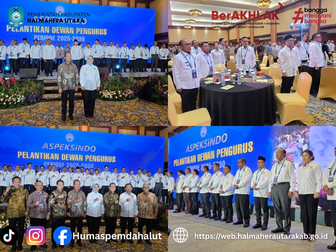 DISKOMINFO - Bupati Halmahera Utara Dr.Piet Hein Babua, M.Si,menghadiri pelantikan Dewan Pengurus Asosiasi Pemerintah Daerah Kepulauan dan Pesisir Seluruh Indonesia (ASPEKSINDO) yang berlangsung di Hotel Borobudur, Jakarta, Selasa 14 April 2026.