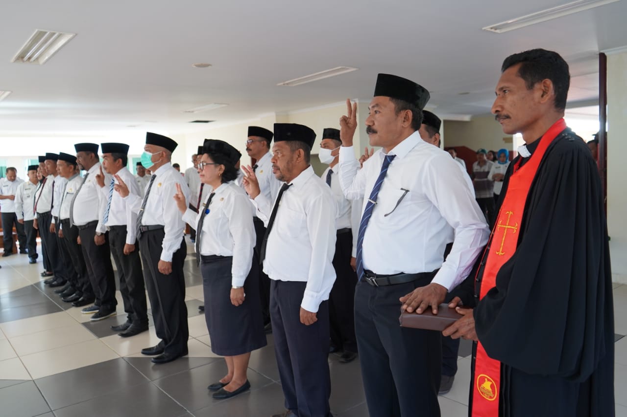 Mereka yang dilantik pada esselon II, yaitu 1. Drs Anwar Surjany Kabalmay sebagai assisten Bidang Pemerintahan, 2. Victor Octavios Mangimbulude, ST Kadis Kelautan dan Perikanan, 3. Selphianus Herman Kaya, S.Kep Kadis Kesehatan,