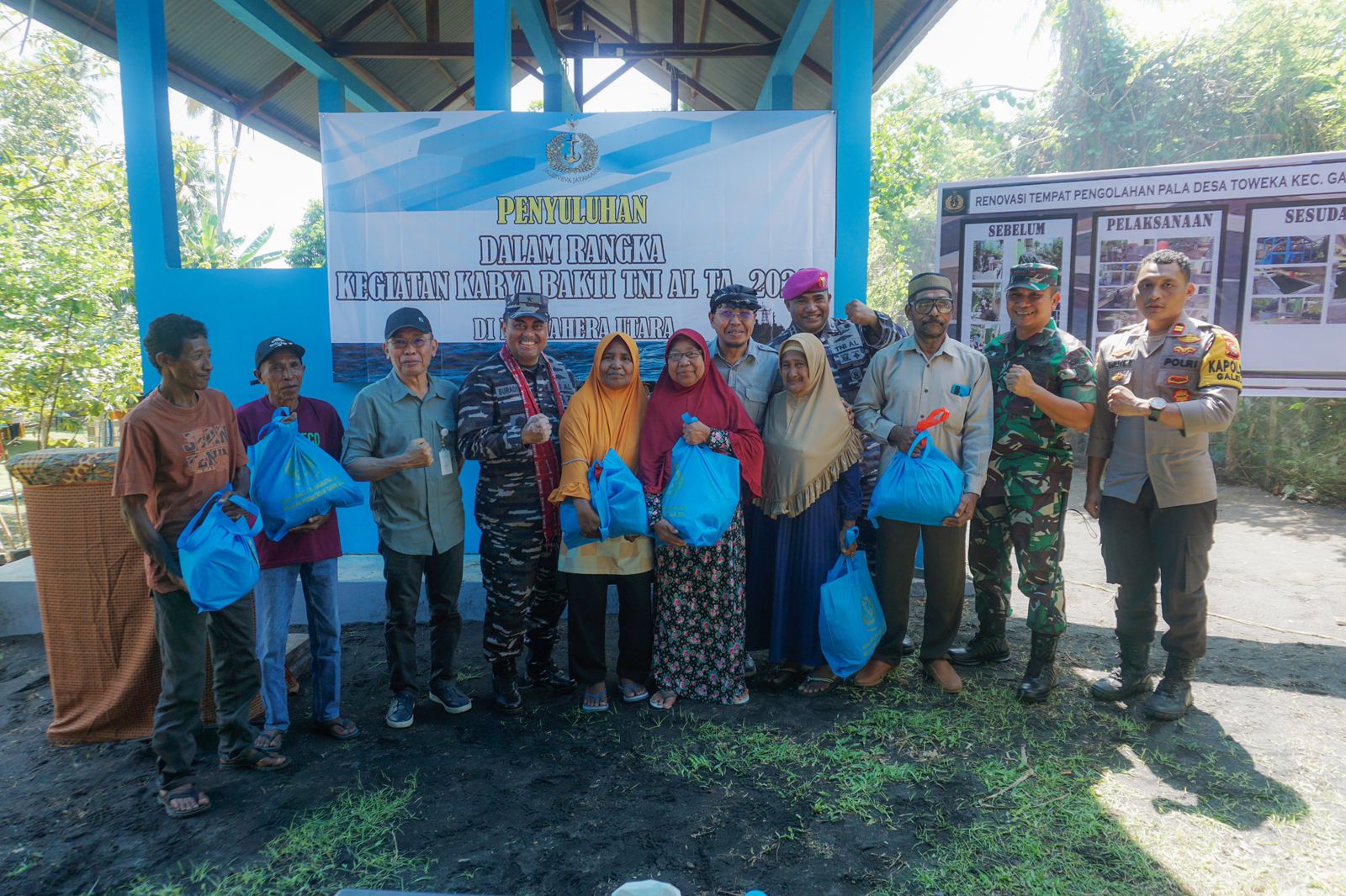 Laksamana TNI Dr Suradi AS, ST. S.Sos. MM, kepala Dinas Potensi Maritim Angkatan Laut bersama rombongan hadir dalam kegiatan ini. Dalam pelaksanaan karya bakti ini, dilakukan peresmian Renovasi Taman Baca Jalesveva Jayamahe, Renovasi Tempat Pengolahan Pala serta memberikan bantuan sembako kepada masyarakat yang membutuhkan.