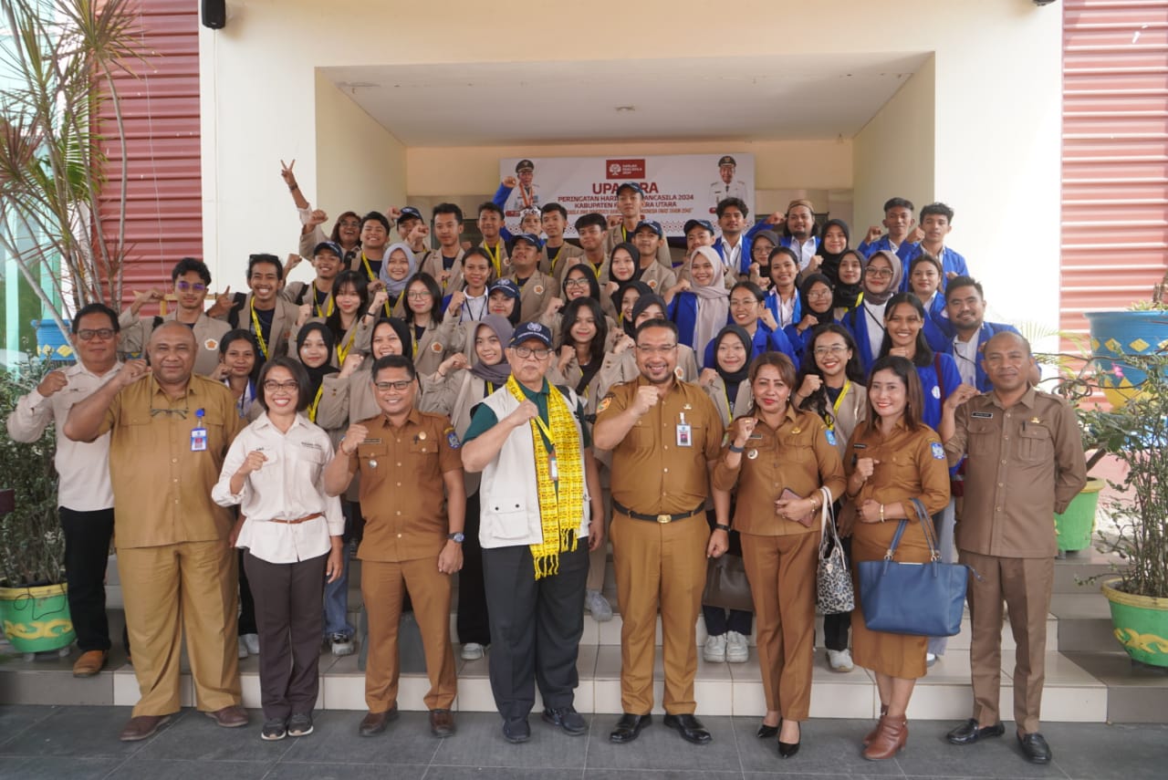 Rombongan mahasiswa peserta KKN-PPM Kolaborasi UGM - Unkhair – Uniera, Pemda Halut Angkatan ke-2 tahun 2024 di kabupaten Halmahera Utara, resmi di terima oleh Sektretaris Daera Drs E.J Papilaya, M.TP di ruang rapat Fredy Tjandua lantai II Kantor Bupati Halmahere Utara (1 Juli 2024)