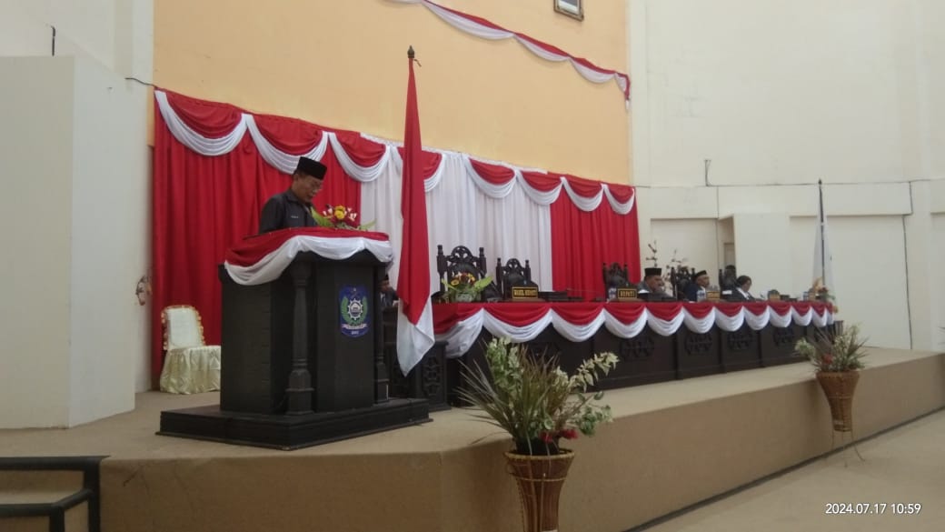 DISKOMINFOSAN,- Bertempat di Ruang Paripurna DPRD Halmahera Utara, Jln.Kawasan Pemerintahan Desa MKCM Kecamatan Tobelo, pada Rabu (17/07/2024) sekira Pukul 10.50 WIT, Dilaksanakan Pengambilan keputusan DPRD terhadap Rancangan Perda tentang Pertanggungjawaban Pelaksanaan APBD, sekaligus penyampaian Rancangan KUA-PPAS Tahun 2025 dalam Rapat Paripurna DPRD.