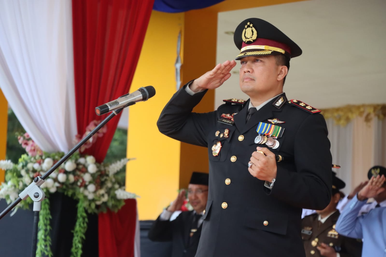 Bertindak selaku Inspektur Upacara Kapolres Halmahera Utara AKBP Faidil Zikri, S.H.,S.I.K., selaku Perwira Upacara Kepala Bagian Ops Polres Halut, Kompol Johanis Aipipideli, S.E, Selaku Komandan Upacara, KBO Intel Polres AKP Haris, Komandan Paskibraka Danki Brimob Tobelo, Iptu Muhammad Thilio bintang Onasis Pembawa Bendera Rahmadani Yanis.