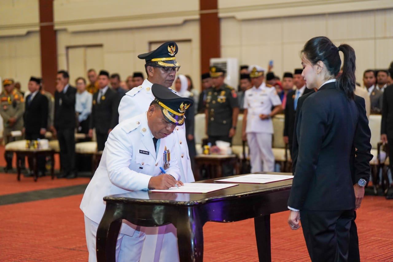 Bupati Halmahera Utara Dr. Piet Hein Babua, M.Si., dan Wakil Bupati Dr. Kasman Hi. Ahmad, S.Ag., M.Pd. dilantik oleh Gubernur Maluku Utara Sherly Tjoanda, berdasarkan Surat Keputusan Mendagri Nomor : 100.2.1.3 -1997/2025 perubahan kedua atas Kep. 100.2.1.3 -221/2025 pengesahan pengangkatan Kepala Daerah, Wakil Kepala Daerah pada Kab/Kota hasil Pilkada serentak Tahun 2025 -2030.