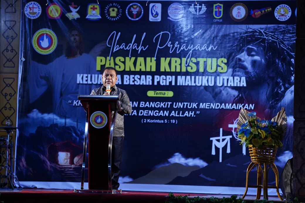 Dalam sambutannya Bupati menyampaikan atas nama Pemerintah daerah kabupaten Halmahera Utara, kami mengucapkan selamat Paskah kepada seluruh jemaat dan masyarakat.