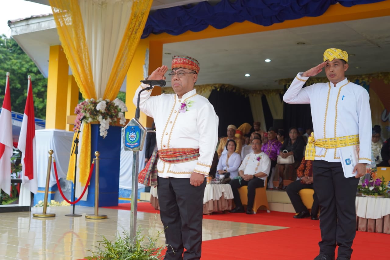 DISKOMINFOSAN, Ulang Tahun ke- 22 Kabupaten Halmahera Utara yang jatuh pada tanggal 31 Mei, diperingati di lapangan DO'OMU MA TAU Senin 2 Juni 2022. Hadir dalam kegiatan tersebut, Wakil Bupati Dr. Kasman Hi. Ahmad, M.Pd, anggota DPRD Halut, Forkopimda, Pimpinan OPD, ASN dan undangan lainnya yang mengenakan pakaian Adat Nusantara. Dalam peringatan HUT tersebut, Bupati Halmahera Utara Dr. Piet Hein Babua, M.Si melakukan Launching beberapa kegiatan, satu diantaranya Hilirisasi Kelapa.