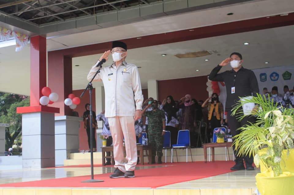 Bupati Ir. Frans Manery bertindak selaku pembina Upacara sekaligus membacakan sambutan Menteri Pendidikan dan Kebudayaan RI, Nadiem Anwar Makarim.
