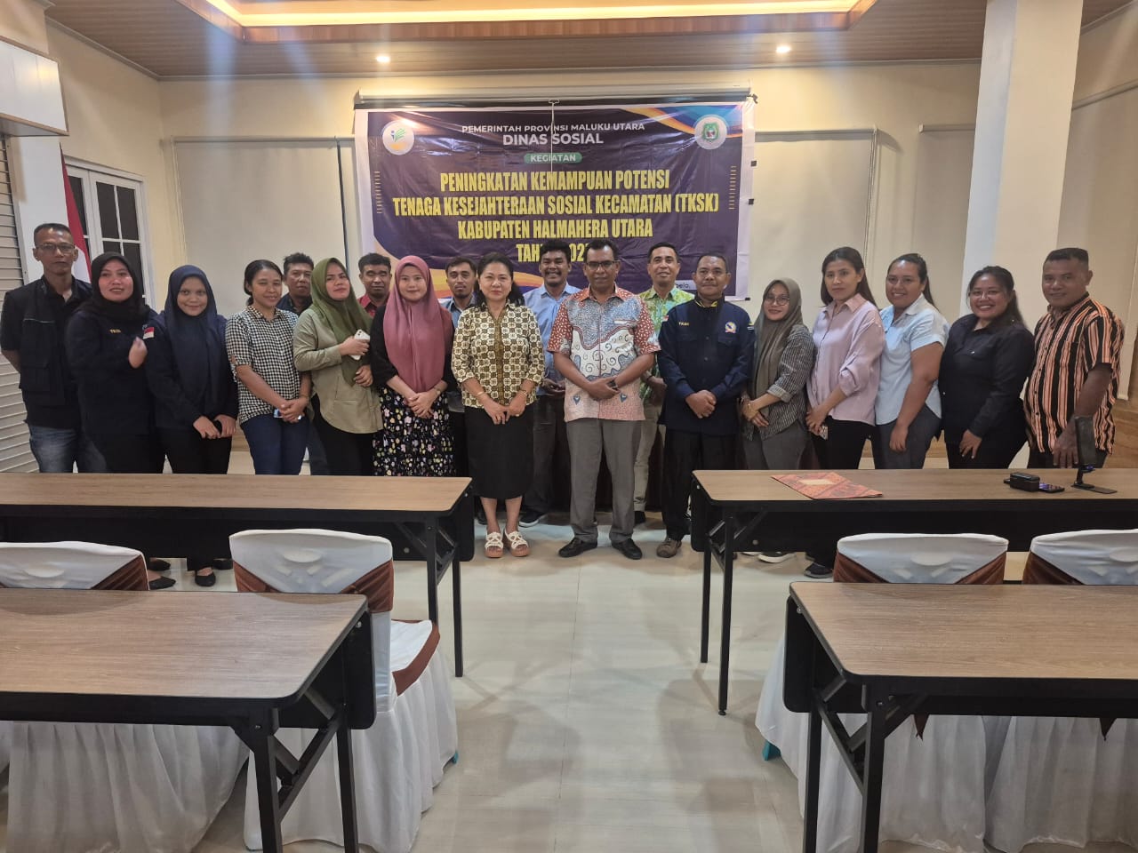 DISKOMINFOSAN - Wakil Bupati Halmahera Utara Dr. Kasman Hi. Ahmad, M.Pd, Membuka acara Kegiatan Peningkatan Kemampuan Potensi Tenaga Kesejahteraan Sosial Kecamatan (TKSK) Provinsi Maluku Utara, bertempat di Hotel Elizabet desa Gamsungi Tobelo Halmahera Utara. Jumat 22 Agustus 2025 .