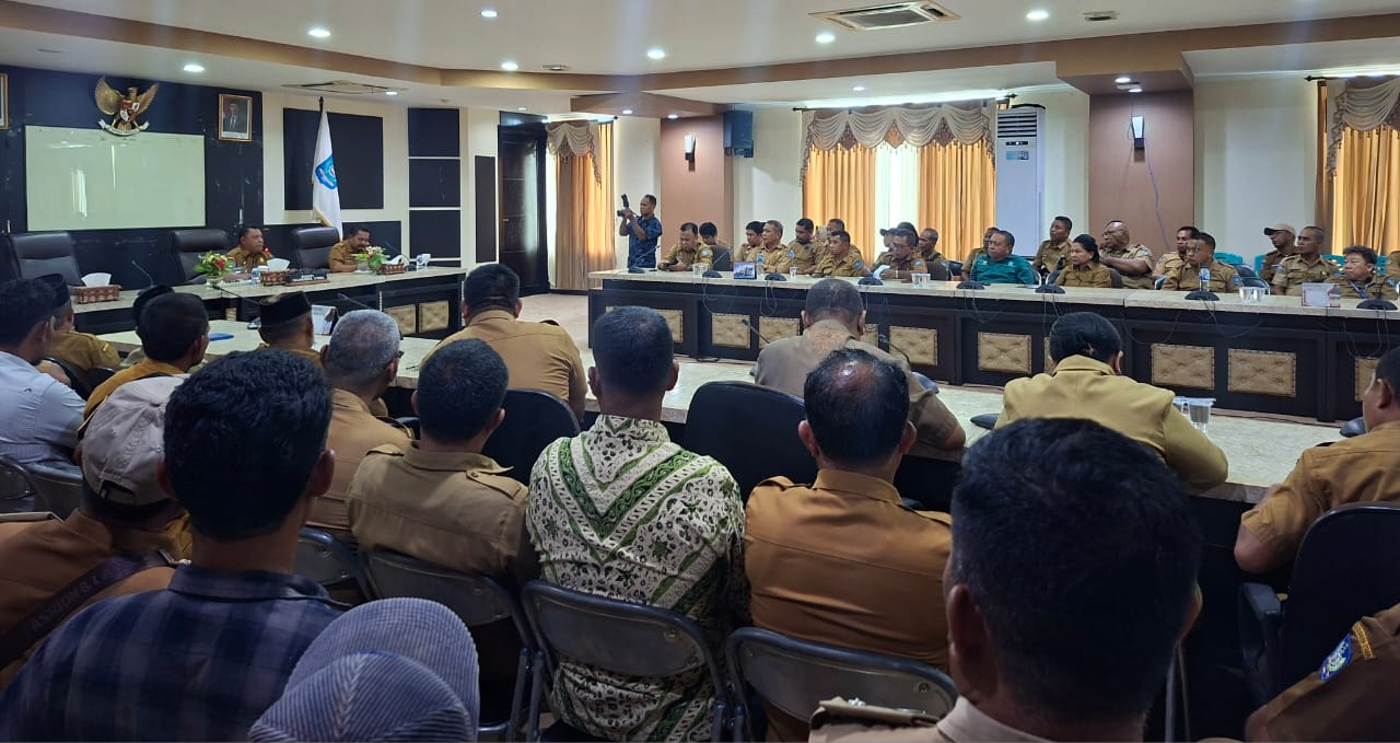 DISKOMINFO. Sekembali dari luar daerah, Bupati langsung mengadakan rapat bersama Pimpinan OPD, Camat dan Kades di ruang pertemuan Fredy Tjandua Lantai II Kantor Bupati Halmahera Utara (1/9). Untuk membahas beberapa hal menyikapi situasi yang terjadi akhir akhir ini.