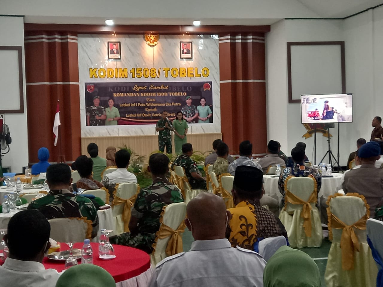 Bertempat di ruang Aula Kodim 1508/Tobelo, Desa MKCM Kec Tobelo (15/6), telah dilaksanakan kegiatan Lepas Sambut Komandan Kodim 1508/Tobelo dari Letkol Inf I Putu Witharsana Eka Putra Kepada Letkol Inf Davit Sutrisno Sirait S.E.