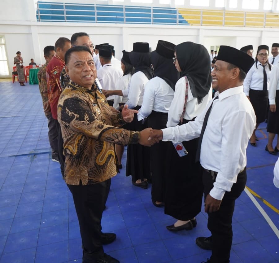 DISKOMINFO. Bupati Halmahera Utara Dr Piet Hein Babua, M.Si menyerahkan Surat Keputusan pengangkatan 354 Pegawai Pemerintah dengan Perjanjian Kerja (PPPK) Tahap I Formasi Tahun 2024 di lingkungan Pemerintah Kabupaten Halmahera Utara (12/9) di Gedung Olah Raga Halut.