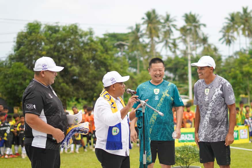 DISKOMINFOSAN - Bupati Halmahera Utara Dr.Piet Hein Babua, M.Si.hadiri kegiatan Coaching Clinic Brazil Football Akademi. Ini merupakan kegiatan sepakbola untuk anak-anak di Halmahera Utara yang pelatihnya berasal dari negara Brazil.Kegiatan di laksanakan di lapangan Kodim 1508/Tobelo desa MKCM Tobelo Halmahera Utara.Rabu 24 September 2025.