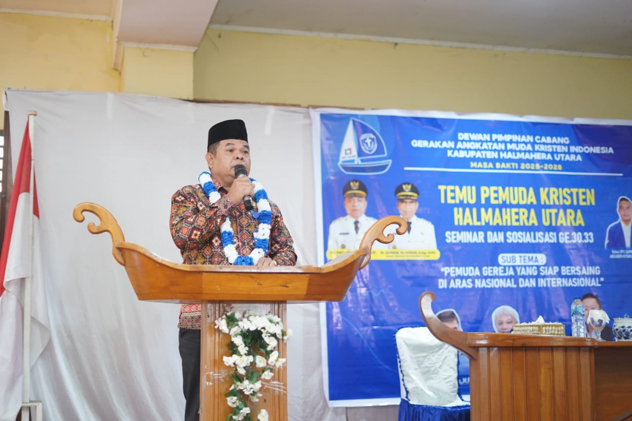 DISKOMINFOSAN - Staf Ahli Bupati Bidang Sumber Daya Manusia (SDM) , Pendidikan dan Kemasyarakatan Setda Halmahera Utara Drs. Wenas Rompis wakili Bupati hadiri kegiatan Gerakan Angkatan Muda Kristen Indonesia ( GAMKI)Kabupaten Halmahera Utara , Temu Pemuda Kristen Halmahera Utara. Bertempat di gedung Hibualamo desa Gamsungi Tobelo Halmahera Utara. Sabtu 27 September 2025.