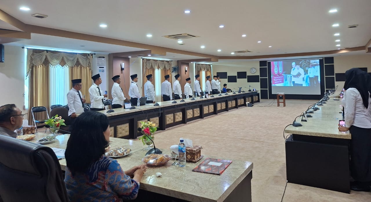 DISKOMINFO. Sebanyak 31 PPPK Kementerian Sosial, di Halmahera Utara menghadiri pelantikan melalui Zoom di ruang Fredy Tjandua lantai II Kantor Bupati Halmahera Utara. Pelantikan berlangsung di Jakarta, secara serentak di seluruh Indonesia oleh Menteri Sosial Saifullah Yusuf. Sekretaris Daerah Drs E. J Papilaya, MTP dan Kepala Dinas Sosial H. Hoata turut menyaksikan pelantikan tersebut.